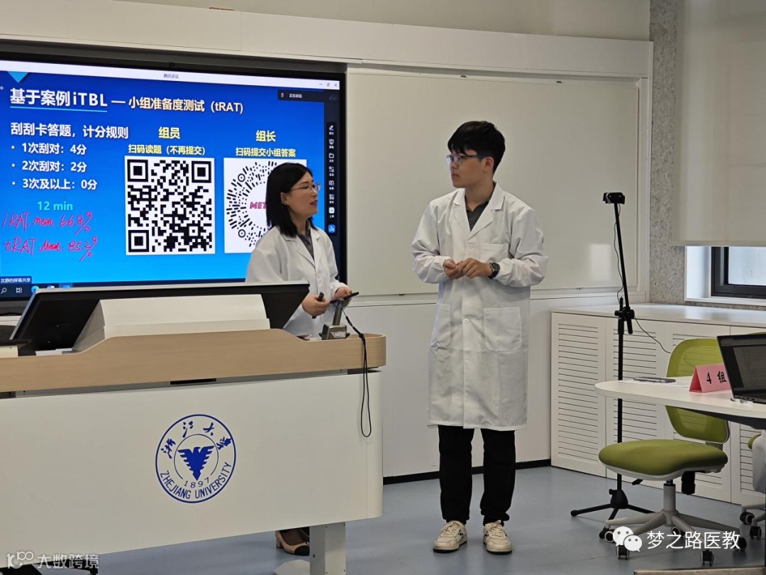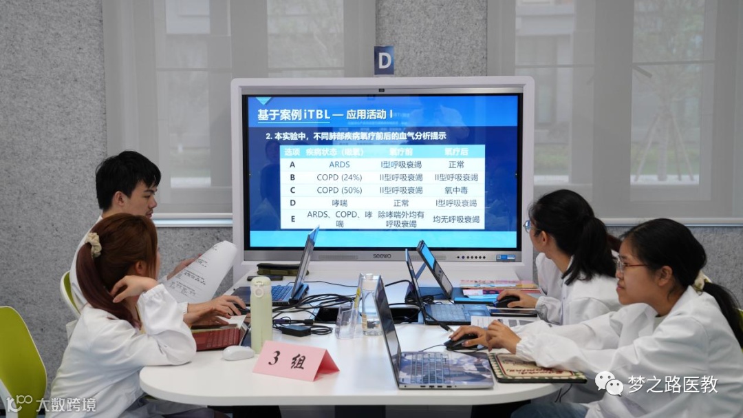 授课实验内容为“呼吸系统人体虚拟实验”,采用基于案例的iTBL (integrated team-based learning)教学法开展教学。课程从虚拟人体器官实验探究问题,再到虚拟病人实验提出问题、解决问题,帮助学生将基础与临床知识进行融会贯通。五校多地同学积极参与,气氛热烈,通过个人和小组准备度测试、举牌答题、白板答题等多种形式进行互动讨论。
