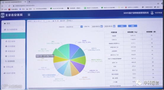 2020年9月1日,北京佑安医院孙副院长接受北京电视台记者采访时提到“现我院引入 “医疗废物全流程监管系统”,对全院每日产生的医疗废物做到“定线、定点、定员、定时”即通过科学化设计好路线和地点,医废工作人员每天做到定时定点采集,统一集中收集处理废弃物,每个环节都做到“医废数据化闭环管理”,决不让任何一袋医疗废物流入社会,极大减少对人为造成的污染和传染等情况的发生。”