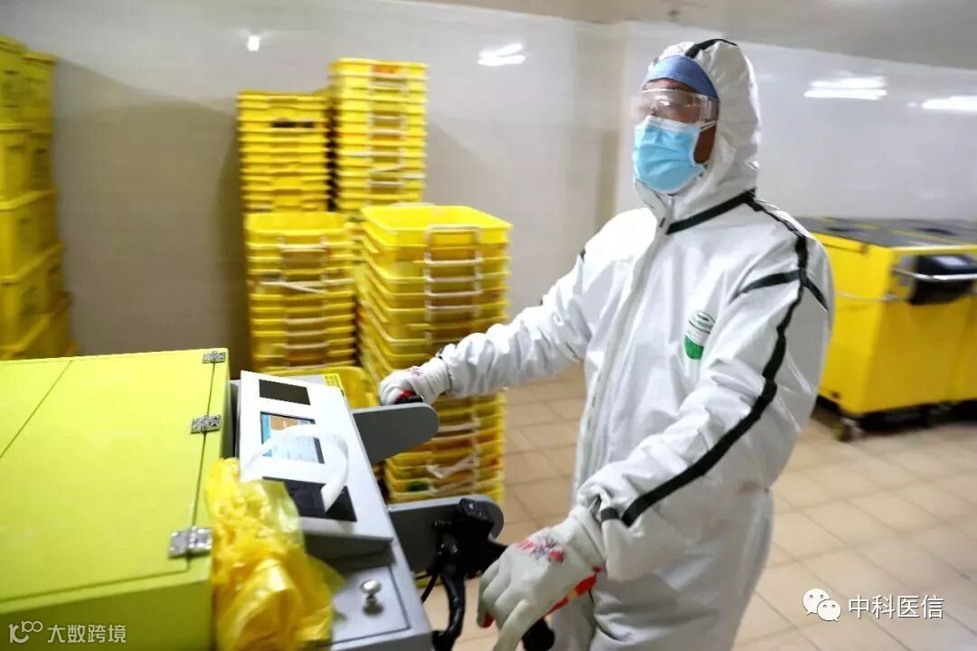 按照应对疫情的要求,像发热门诊、急诊这样很可能与疫情发生联系的部门,医疗废物需要专人负责,且不能混装、混运。把急诊的医疗废物送回暂存站后,老邢马上出发,去发热门诊所在的感染楼,而他的同事,立即开始消毒、分装刚刚送回来的废物。