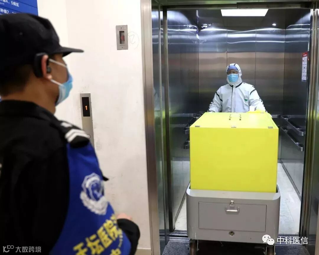 急诊留观、急诊抢救室,每到一处,老邢都小心翼翼地从黄色的医疗废物专用垃圾桶中取出同样是黄色的垃圾袋,再小心翼翼地装进转运车,转运车上的液晶屏上,显示着废物来自哪个科室、重量等信息,老邢要逐一确认并打印出凭证,以便可以溯源。