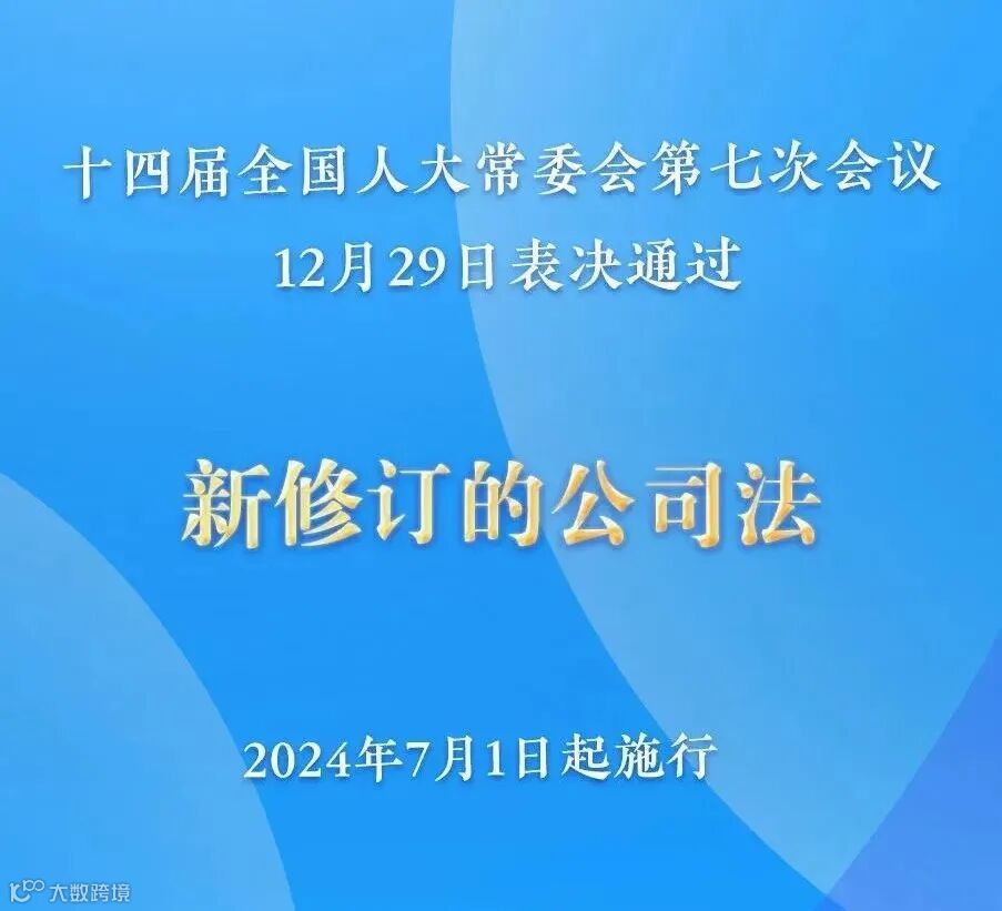 十四届全国人大常委会第七次会议12月29日表决通过新修订的公司法,于2024年7月1日起施行。