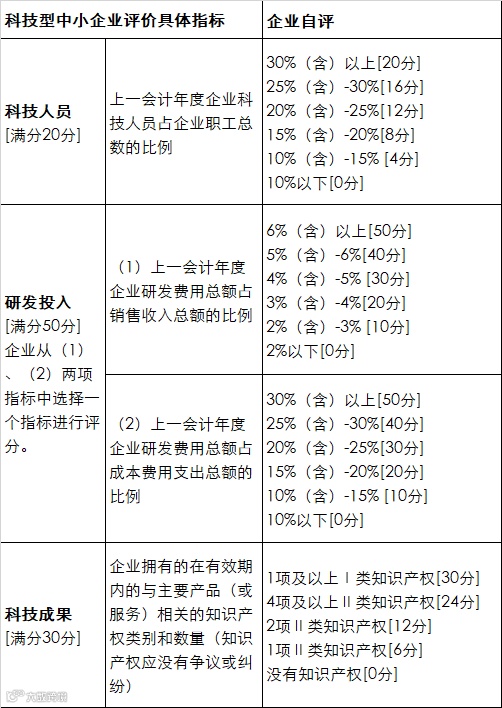 5.企业自评:企业根据科技型中小企业评价指标进行综合评价所得分值不低于 60 分,且科技人员指标得分不得为 0分。