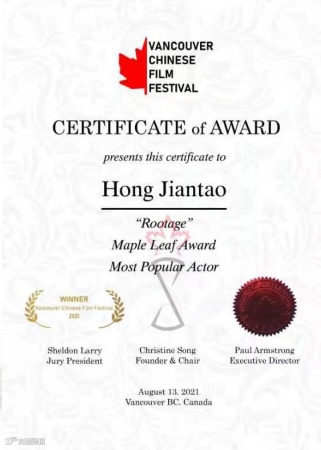 2021年8月院线电影《生根》荣获第九届温哥华“红枫叶奖” 多元文化奖、评委会奖、最受欢迎男演员奖。