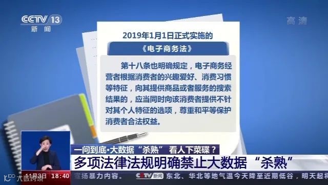 早在2019年1月1日正式实施的《电子商务法》的第十八条明确规定,电子商务经营者根据消费者的兴趣爱好、消费习惯等特征,向其提供商品或者服务的搜索结果的,应当同时向该消费者提供不针对其个人特征的选项,尊重和平等保护消费者合法权益。