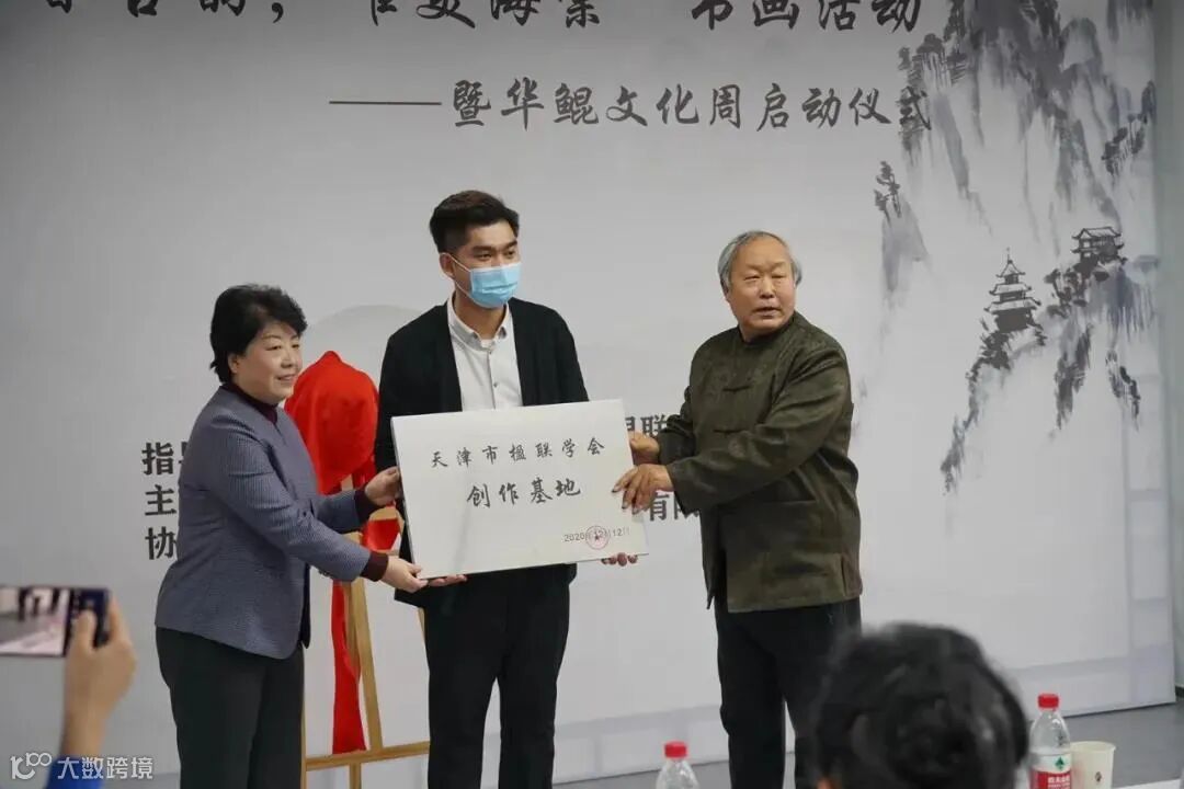 津南区政协副主席、津南区文旅局局长、津南区文联主席刘颜明为活动致辞。随后,文联主席刘颜明与书法艺术家唐云来共同为天津市华鲲影视文化传媒有限公司授予天津市楹联学会会员单位牌匾,中国楹联学会副会长、天津市楹联学会会长陈伟明进行致辞。