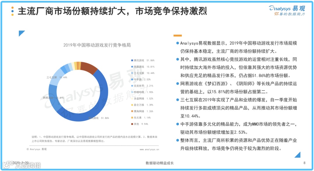2019年中国移动游戏发行竞争格局(图片来源:易观)
