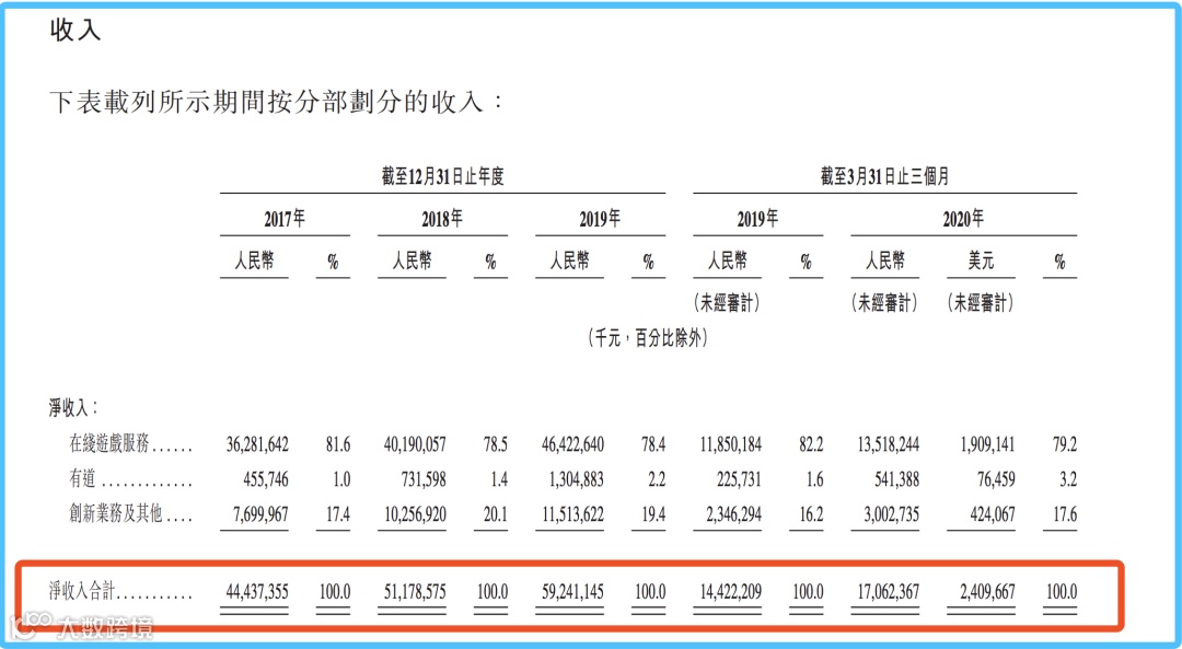 根据招股书,网易主营业务是在线游戏、在线教育(网易有道)、创新业务及其他(包括网易云音乐、网易严选等)。
