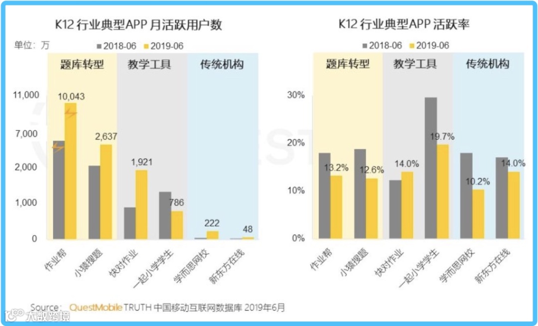 K12行业典型App用户活跃情况(图片来源:QuestMobile)