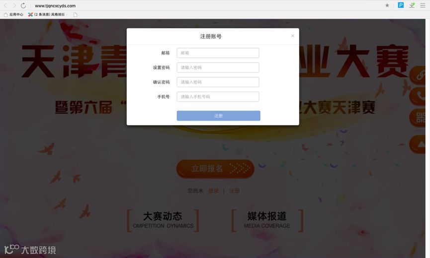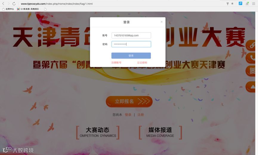 1、登录大赛官网http://www.tjqncxcyds.com/,在首页先进行注册(见图一);