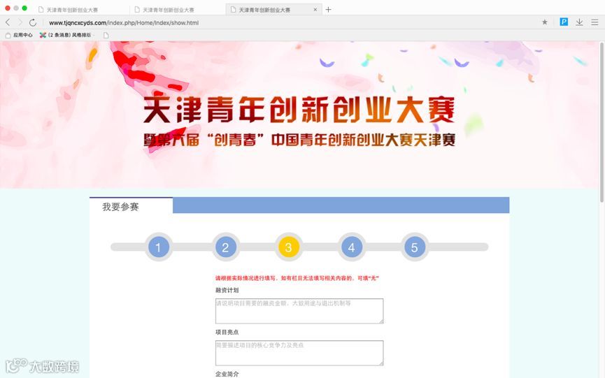 第六届天津青年创青春创新创业大赛报名流程