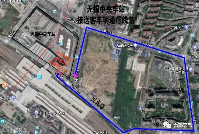 崇安、南长、锡山前往中央车站地下停车场:可从广瑞路、瑞兴路转入兴昌路,从兴昌路出入口进入地下停车场;