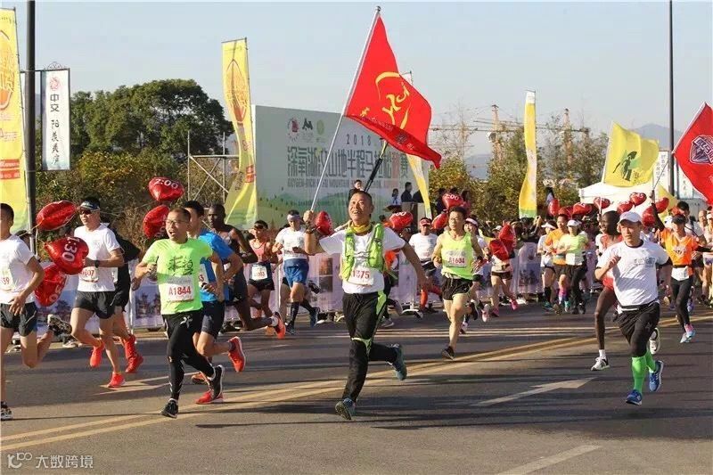 在半程赛中,来自肯尼亚的选手HOSEAKIPLAGAT以1小时10分钟14秒获得了男子组第一名、来自宜兴湖㳇本土的选手董诗云以1小时23分28秒获得了女子组第一名。