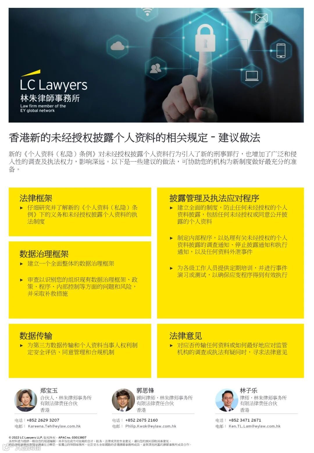 中国大陆的《个人信息保护法》引入了广泛的数据隐私保护框架,其中包括对个人数据的收集、使用和保留的严格要求,以及对跨境传输的限制,而香港的《2021年个人资料(私隐)(修订)条例》亦将未经授权披露个人资料而导致指明伤害定为刑事罪行,并针对未经授权披露引入了全面的调查和执法权力。