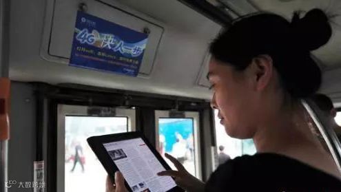 资料图:沈阳市民在公交车上免费使用4G网络上网。