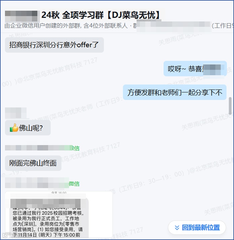 3、复盘与心态建设:每次面试结束后,导师都会与毕同学共同复盘,通过反复练习与针对性训练,帮助其在不断总结中,提升面试表现,同时调整求职心态,以更自信从容的状态迎接后续挑战。