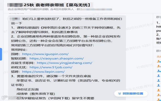 2、专业面试突破:针对岗位模拟场景,提供专业术语词汇表,结合面试参考问题,通过腾讯会议进行一对一演练,针对薄弱环节重点提升。