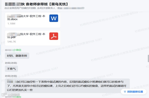最后,针对朱同学“收到面试通知不知所措”的问题,组织面试模拟与复盘分析,帮助其克服经验不足,从而有效准备面试。