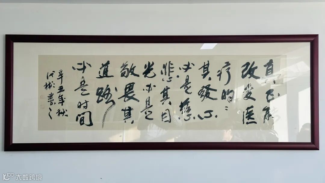 不只是闫峻等医渡科技管理层的办公室内,在公司展厅最显眼的位置上,都悬挂着这样一幅字,“真正能改变医疗的,其发心必是慈悲,其目光必是敬畏,其道路必是时间。”