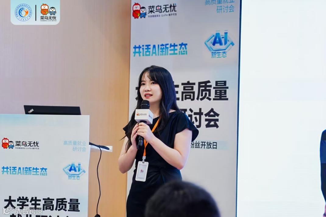 作为菜鸟无忧的领航者,董事长、总裁袁军也亲临现场并带来主题分享,结合自身深耕就业服务行业十余年的实践经验,带来“AI 赋能就业服务,助力大学生突破求职困境” 的精彩分享。 袁军总裁指出,当前大学生就业不仅面临 “数量压力”,更面临 “能力适配” 难题 —— 许多学生拥有扎实的专业知识,却因缺乏对行业趋势的判断、岗位需求的认知,导致求职时屡屡碰壁。他以菜鸟无忧服务过的数万名校招案例为切入点,详细介绍了 AI 技术在就业服务中的实际应用:通过 AI 智能分析系统,可精准匹配学生专业、技能与企业岗位需求,为学生推荐 “高适配度” 岗位;借助 AI 模拟面试,能还原不同行业、企业的面试场景,帮助学生提前熟悉面试流程、掌握答题技巧,缓解求职紧张情绪。