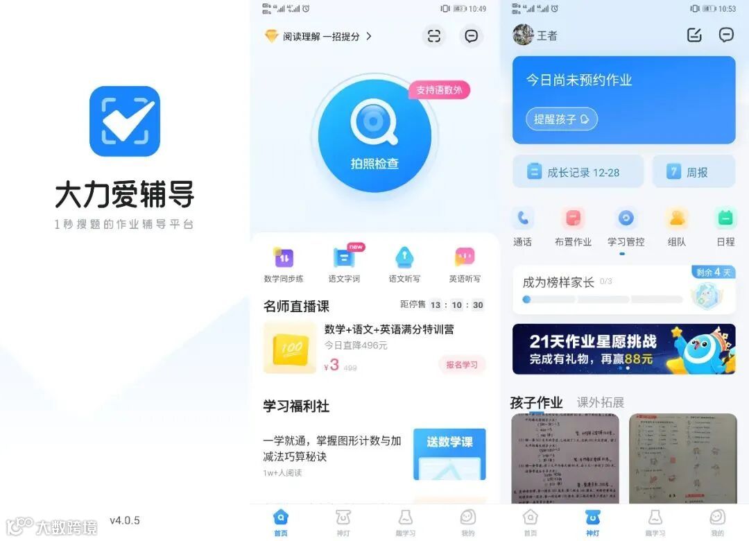 在硬件智能的情境下,硬件与软件的融合贯通必不可少。大力智能作业灯可配合大力爱辅导APP使用,实现作业同步、亲子实时通讯以及360度学情报告等功能。