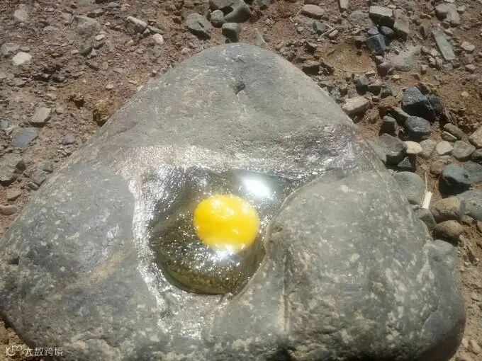 在地上烤鸡蛋,还没来得及熟水分就被蒸发干了!