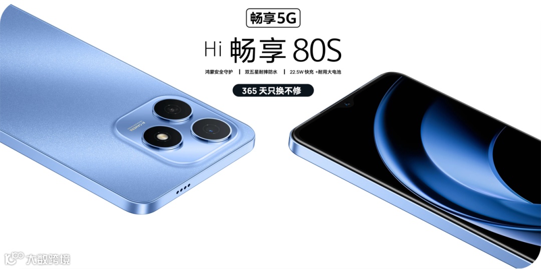 Hi畅享 80S 是追求实用与清新风格的均衡入门机型。它采用直角边框与直面屏设计,搭配“晴空蓝”等时尚配色,配备 6.56英寸 LCD 护眼屏,机身轻盈握感舒适。内置 5000mAh 大电池续航出色,支持鸿蒙生态实况窗、多设备互联等功能,并具备双五星耐摔防水认证,抗摔防水能力强,日常使用更安心。