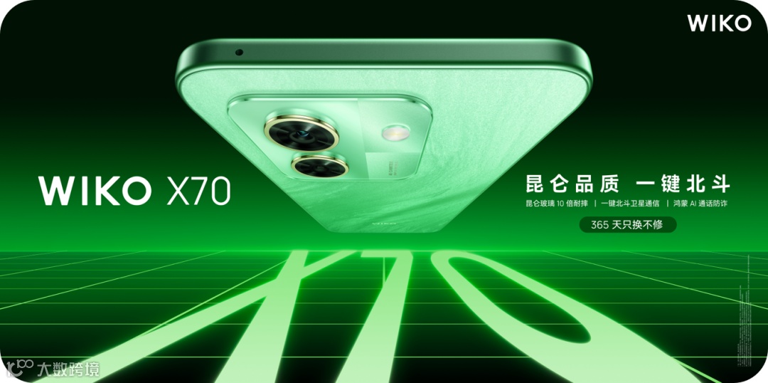同时,WIKO 也大力发展线上市场,面向年轻用户推出了首款线上机型 WIKO X70。该手机主打“昆仑品质,一键北斗”:首先,它搭载昆仑玻璃与玄甲机身2.0结构,实现 360° 抗摔防护与 IP64 级防水,配合“365天只换不修”专属服务,将耐用与安心做到极致。其次,它支持北斗卫星通信,在无地面信号环境下也能发送图文信息。最后,其内置的 6100mAh 超耐用大电池与 40W 快充提供了持久续航,并深度集成鸿蒙生态 AI 能力,带来从智慧防诈到跨端协同的全场景体验。
