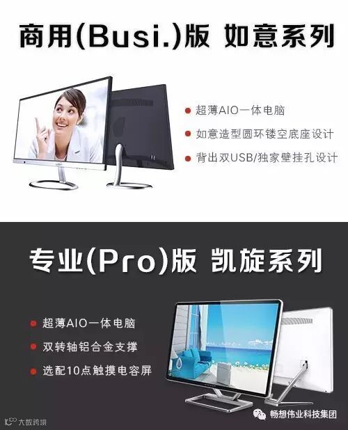 ThinkView/畅想视界一体机在此次会议中亮相的产品有:凯旋系列的23.8英寸,如意系列的19.5英寸&21.5英寸。