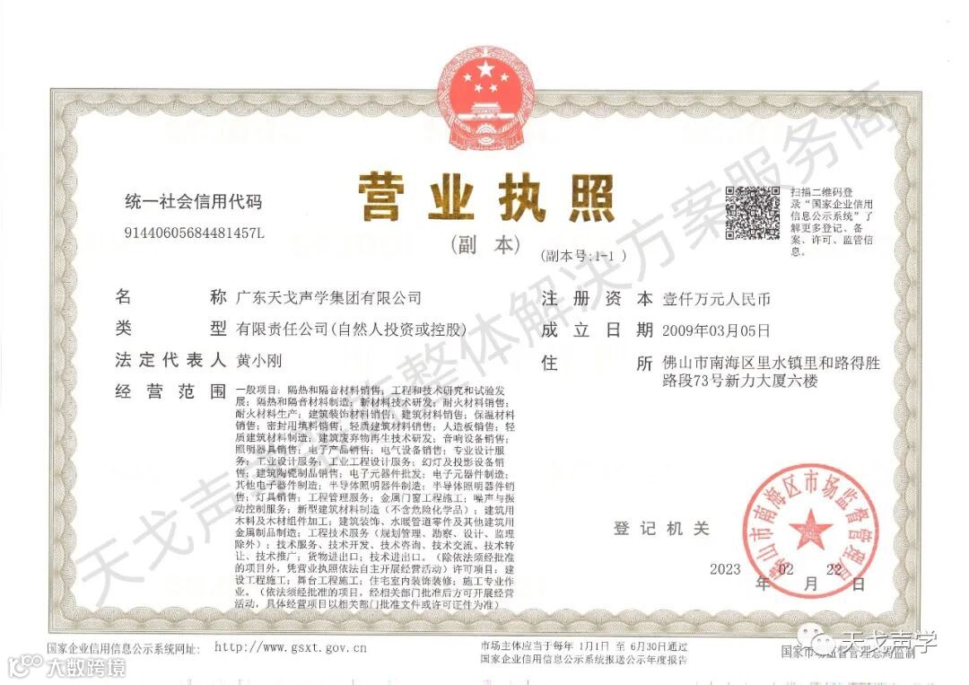 天戈声学是国家《民用建筑隔声设计规范》和《超大公共空间建筑声学设计规范》参编单位,中国舞台与美术学会剧院建筑技术委员会专家委员单位,广东省装饰设计协会副会长单位,拥有自主知识产权的专利产品50多种。天戈工厂获ISO9001,ISO14001,ISO45001认证,天戈产品获得欧盟CE认证、法国必维认证和国内外各种权威检测报告近150+项,同时我司还具有建筑声学设计一级、建筑装饰施工二级资质和建筑装饰工程专项设计乙级资质。天戈声学,让饰界拥有天籁之音。