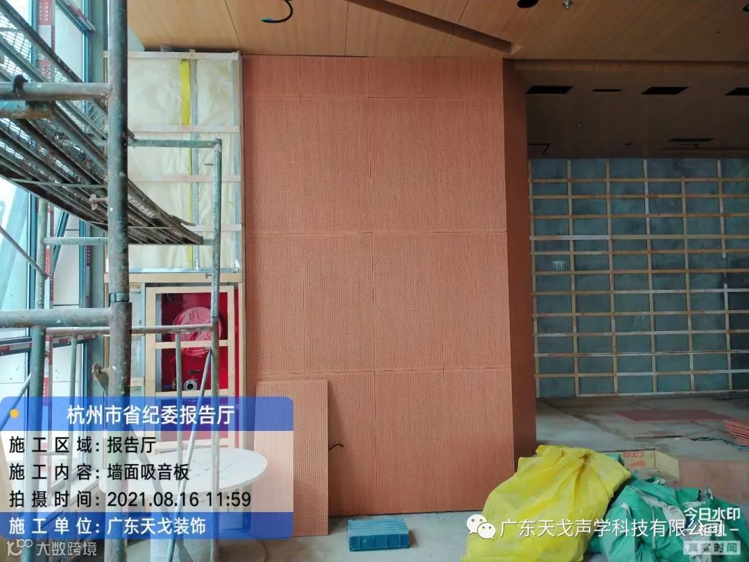 杭州中央纪委监察部杭州培训中心是中央纪委监察部所属三个纪检监察干部培训基地之一,创办于1990年4月,占地65亩,建筑面积45000平方米。各类报告厅、多媒体教室、会议室、讨论室27个。其中1-2楼重要会议纪要报告厅声学装饰部分由广天戈声学整体施工完成,采用自主研发A级防火穿孔吸音板、防火布艺吸声软包。