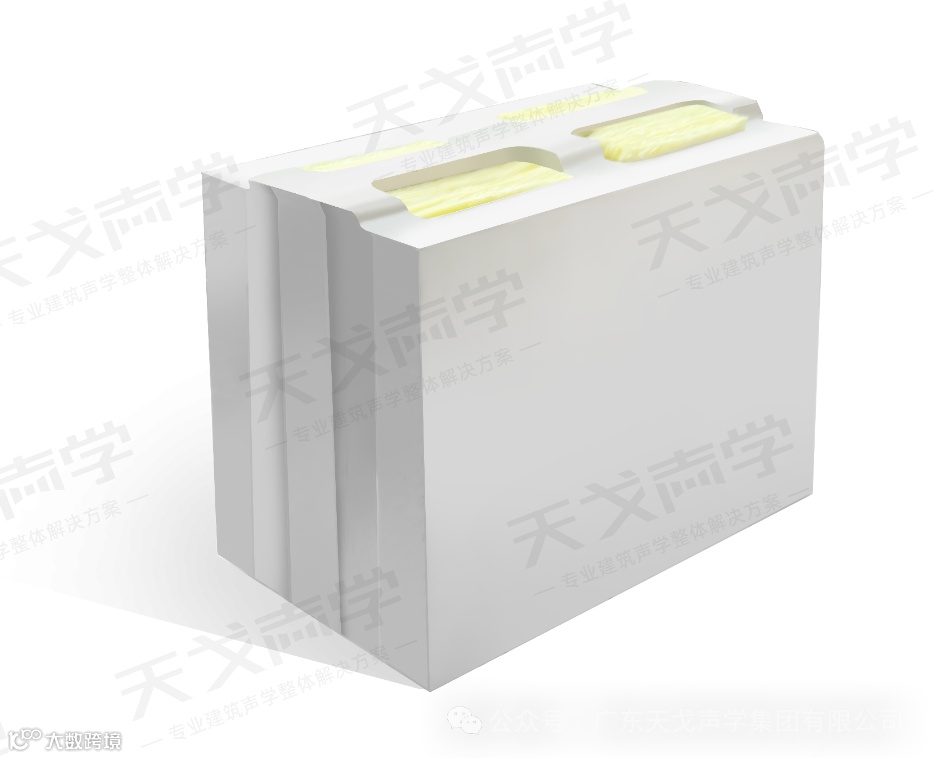 两层墙板中间填充吸音玻璃棉,声波通过一侧墙体被大量吸收后,吸音棉发挥良好的二次吸音作用,声波再作用于另一侧墙体吸收声能,因而向另一侧传播的音量也由此大幅下降。