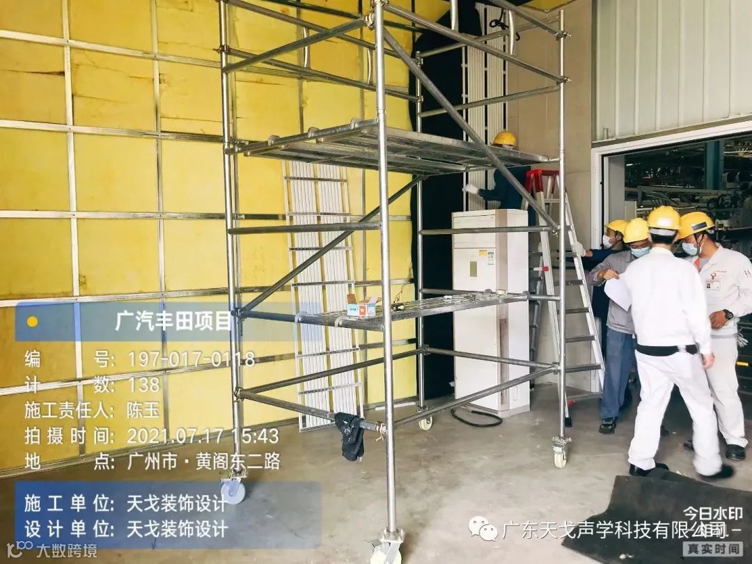 该项目为广汽丰田车间防爆区拆迁改造工程,该场所是广汽丰田生产汽车配件,拆卸装卸,防撞击测试的区域,由于现场使用的隔音材料是泡沫铝板隔墙,不能对空间产生很好的隔音吸音作用,造成撞击测试的时候撞击回声过大,由于防爆区需要大量的防撞击测试,产生的撞击噪音超过70dB,导致车间的生场工作环境比较差,我们改造注重隔音吸音,增加了天戈声学自产的隔音隔墙板,防止声音传导到其他办公区域,有效隔音40dB。增加现场防撞击的吸音改造,有效降低室内的撞击声,墙面采用天戈声学防火A级的槽铝吸声板,内填吸音棉,达到预期的吸音效果。整个项目由天戈声学F2EPC承包,涵盖设计、材料制造、施工一体化,工期仅15天。