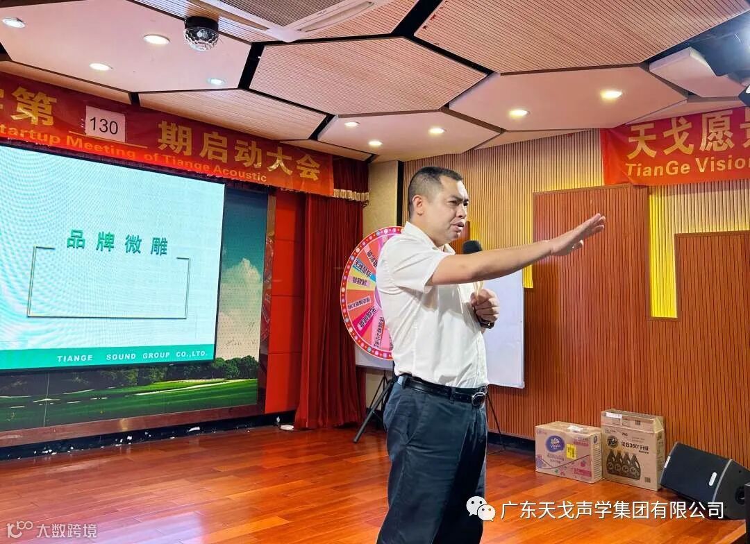 在这个值得庆祝的日子里,天戈人感到无比自豪。天戈已经在声学行业发展了15年,一路乘风破浪,崭露头角。我们将紧跟祖国经济发展的步伐,共享繁荣兴盛的果实;10月5日,天戈家人齐聚公司多功能厅,如期举行了第130期的启动大会,本期主题为"品牌微雕",寓意着我们将不断优化产品,提高服务质量,以满足客户的需求。同时,我们也将积极拓展合作伙伴关系,共同开创更加美好的未来。