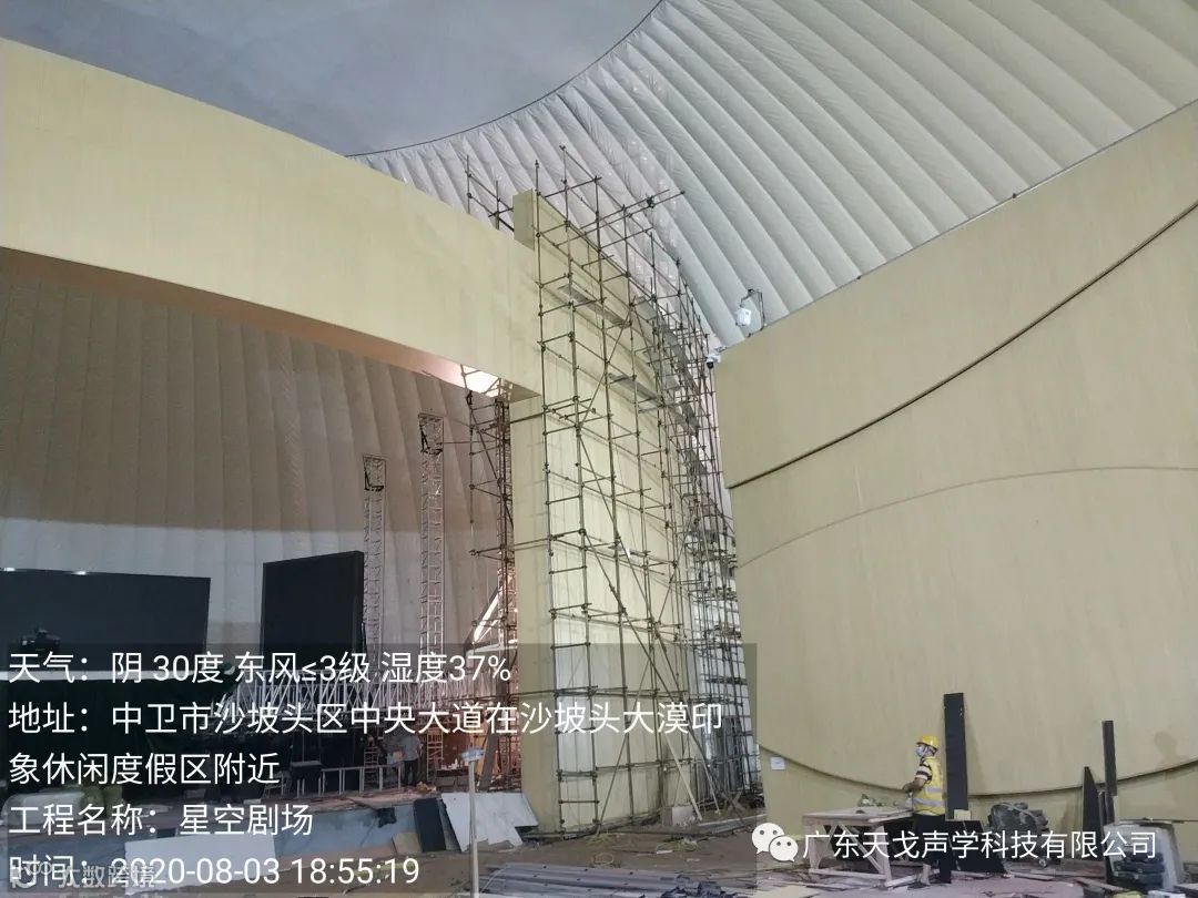 2020年7月15日至8月5日天戈声学一手打造了沙漠中的演艺明珠——“星空剧院”的声学装饰工程。从声学装饰方案设计、声学装饰材料生产到声学装饰施工都由天戈声学独立完成。