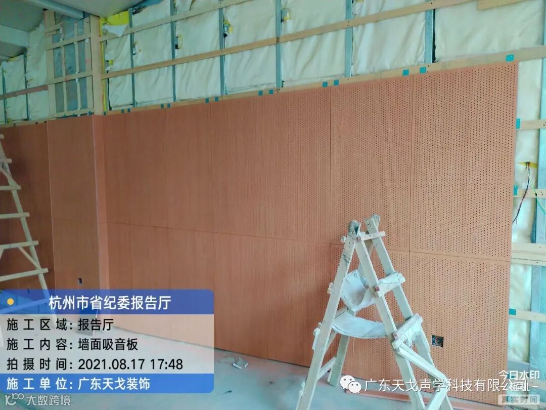 杭州中央纪委监察部杭州培训中心是中央纪委监察部所属三个纪检监察干部培训基地之一,创办于1990年4月,占地65亩,建筑面积45000平方米。各类报告厅、多媒体教室、会议室、讨论室27个。其中1-2楼重要会议纪要报告厅声学装饰部分由广天戈声学整体施工完成,采用自主研发A级防火穿孔吸音板、防火布艺吸声软包。