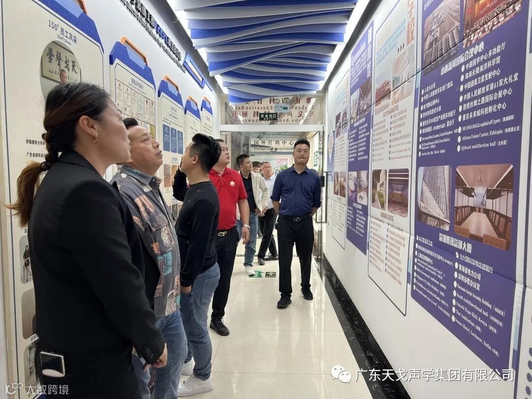 2023年12月14日,天戈声学集团有限公司迎来了一批贵宾——是来自佛山湖南省衡阳市的多位商会代表。讲解员陪同刘会长以及他的组员参观了公司的文化长廊墙,并且介绍了天戈声学集团的发展历程、企业文化及声学发展史。同时还强调了天戈声学集团一直以来对技术创新的重视和对企业文化的不断打造,让各代表们更加了解天戈声学集团的发展历程和未来的发展方向。
