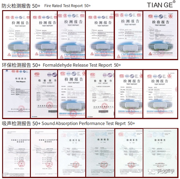 3.天戈自主专利产品50多种,部分专利产品吸声效果高于同行30%,性价比极高。
