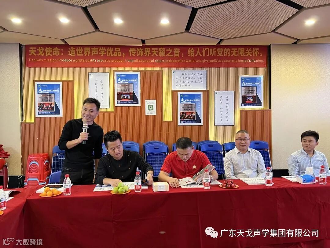 黄董在会上提到,在市场方面,要么第一,要么唯一。聚焦定位到多用途厅堂声学装饰整体解决方案厂商,让客户更加省心。在人才方面,以学代管、以考代教、训战结合、建立学习型组织。加强文化宣导,完善培训体系。走城市合伙人(经销商)的合作共赢营销路线,坚持做难而正确的事,是每个天戈人要牢记的企业文化和战略。