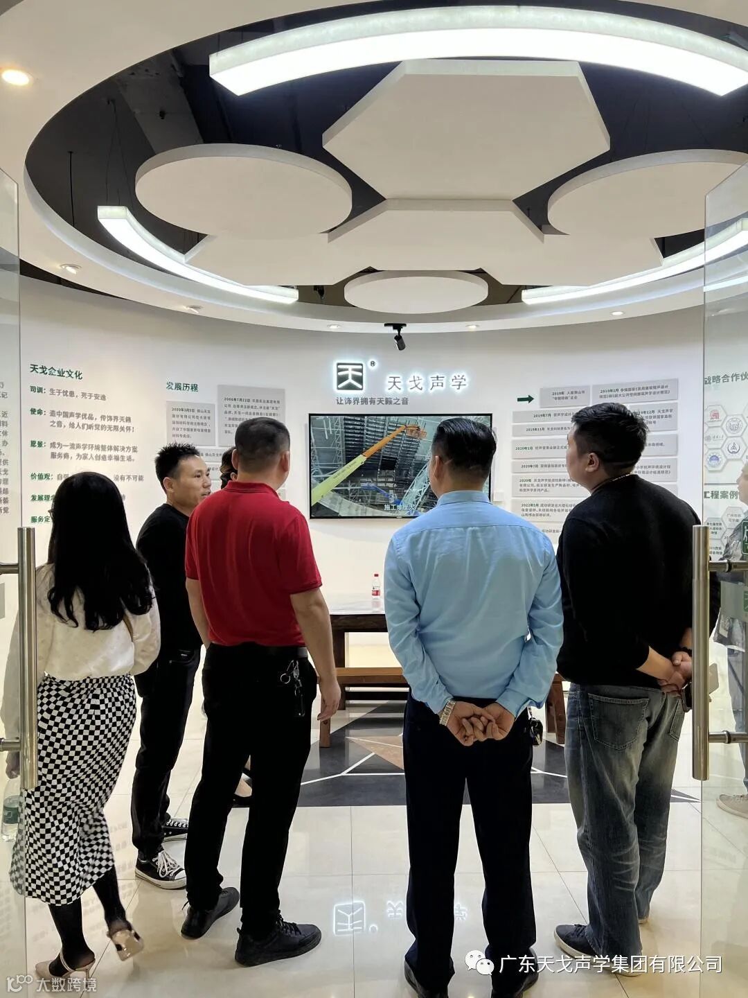 天戈声学集团成立于2008年,是中国一流的声学装饰整体解决方案服务商,旗下拥有自己的声学装饰设计公司、营销公司以及自主1万平方米的生产工厂。在职正式员工150多人,天戈材料工厂和营销科技两家公司均被评为广东省高新技术企业。