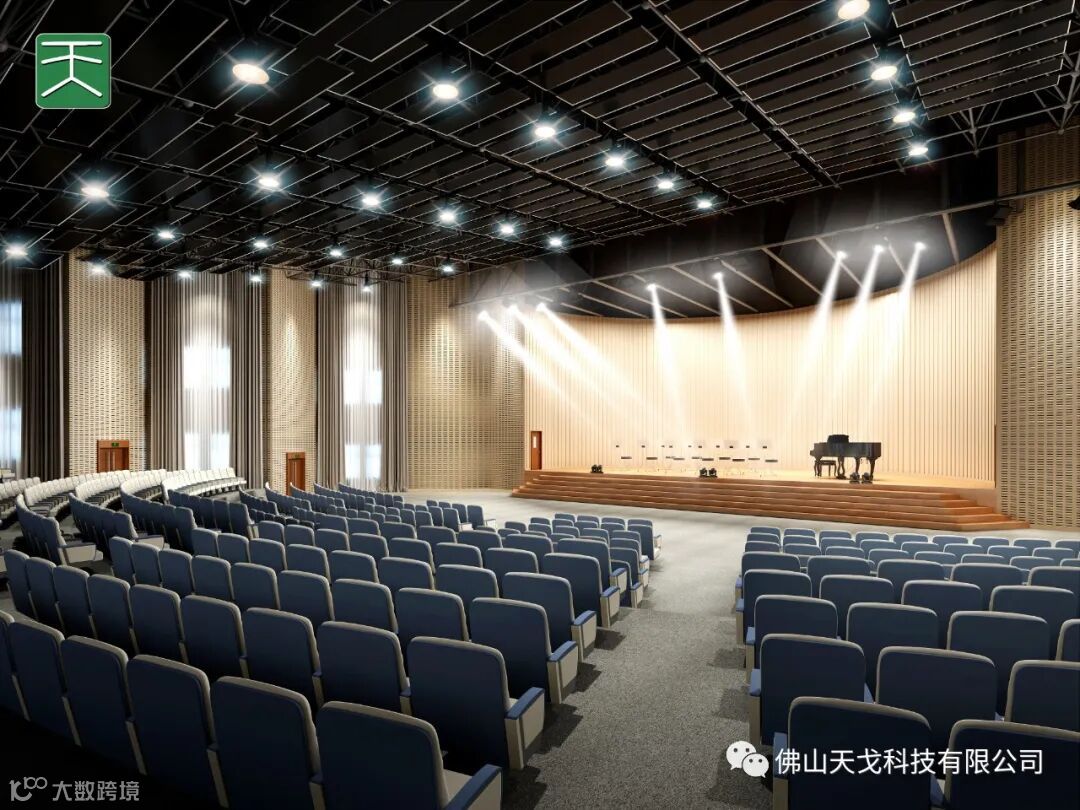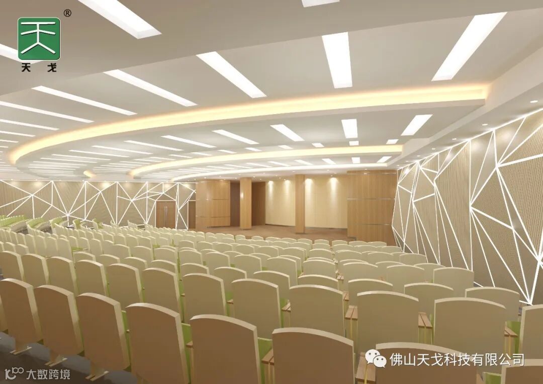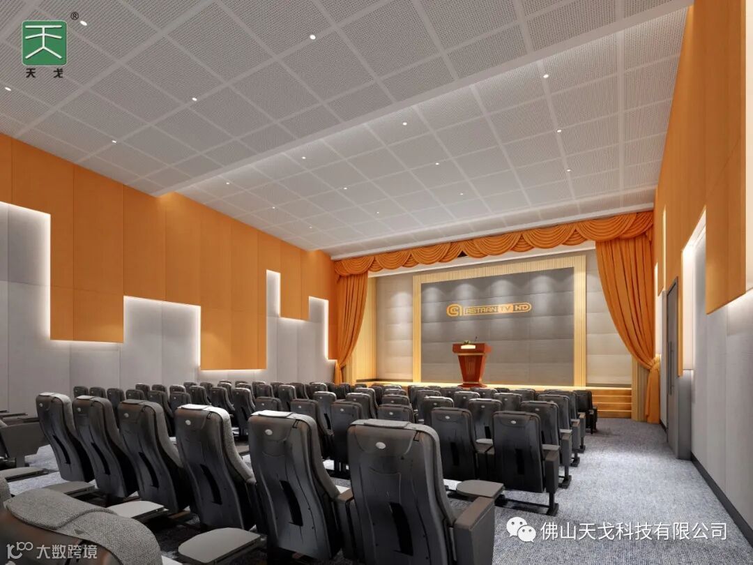 天戈声学自主研发、订制生产、销售各类材质的槽孔吸声板、吸声软包类、空间吸声体类、槽铝吸声板、陶晶砂吸声板、超纤吸声板、WGF不燃吸声板,隔音板、隔音门,环保A级不燃吸隔声产品。可以承接各类演艺馆、体育馆、会议中心、宴会厅、小剧院、电影院、录音棚等空间的声学设计与装饰一体化工程。