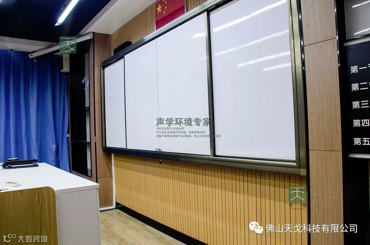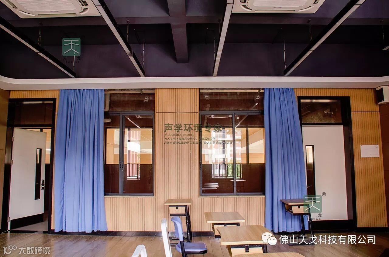 我公司有幸做为该学校第一期的声学材料供应商,为该学校的教育事业贡献我们的一分力量。在装修前期,我们与施工方做了很多沟通。对方一再强调吸声材料不但要达到良好的吸音效果,并且一定要环保,可见学校是多么重视学生的教学环境。