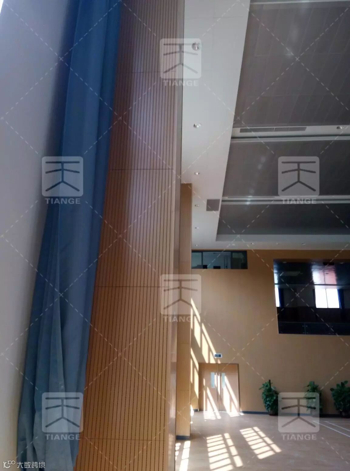 再到场馆内避免声学缺陷,例如:回声,多重回声,颤动回声等声学缺陷。我司采用在墙身四周总面积1100平方上安装吸声结构表面采用槽木吸音板28/4,穿孔率达到9%.通过处理后优化好场馆内存在的声学缺陷。让使用过程中体现出优质听觉不再为回声与语言清晰度而苦恼。