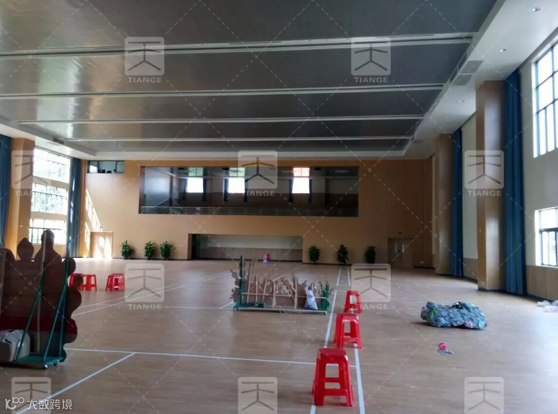 该项目平时除了供学生运动外,平时一些活动或者会议都会在这举行,所以在声学环境中是不可忽视的,该项目为我司做深化声学方案从隔声先考虑,可达到在进行活动中不影响楼上,楼下的正常上课。 在场馆内四周墙身、天花都采用隔音一系列产品打造房中房结构,与采用专业隔音门。通过处理后隔绝了55分贝的音量,隔音门隔绝了45分贝以上的音量。不再让噪声影响其他课室正常使用。