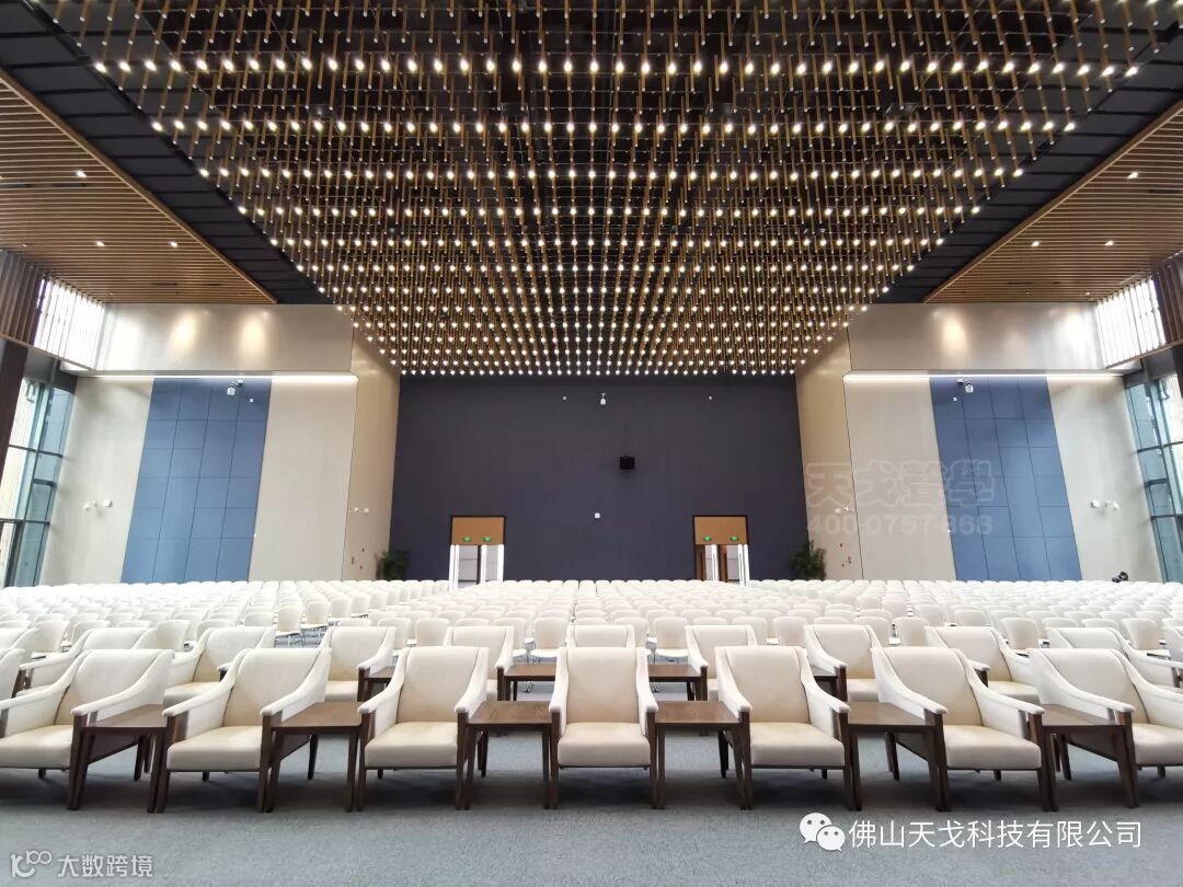 佛山中欧中心多功能会议室是一个新建工程,总占地面积为8550㎡。经过天戈声学进行声学装饰后,该功能厅内的全频混响时间500Hz平均值为1.35s,1000Hz的平均混响时间为1.28s,达到设计值要求,消除了回声、多重回声、颤动回声等声学缺陷,听音清晰,满足国家标准要求。