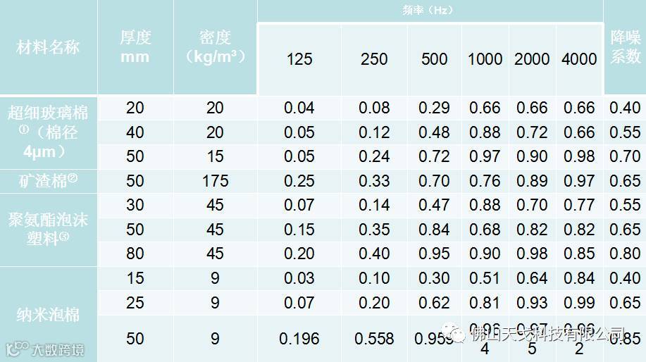 常见吸音材料吸声系数比较