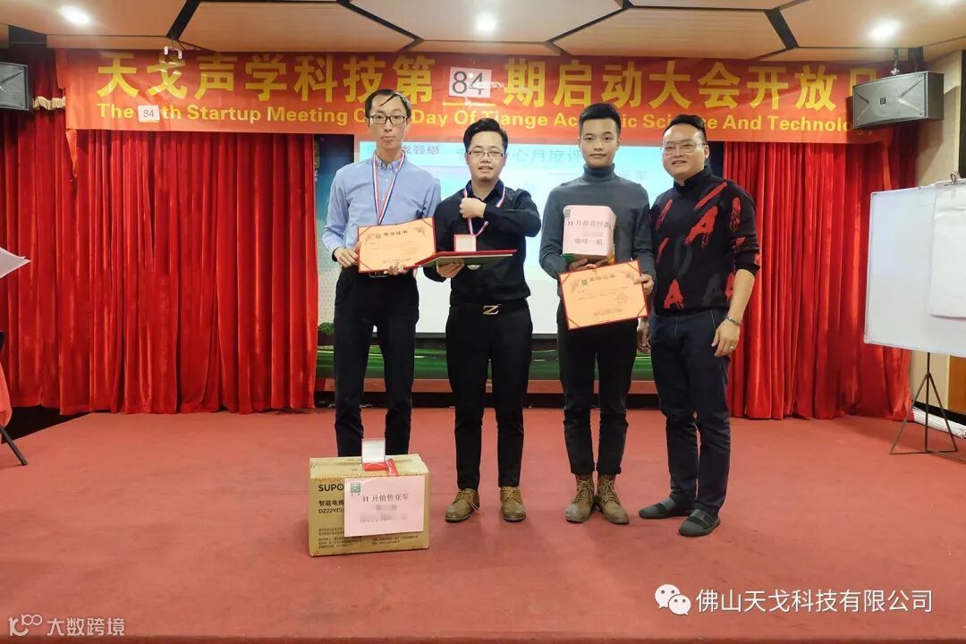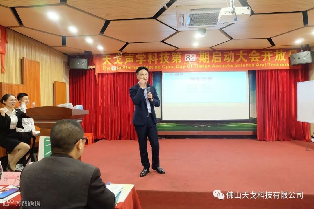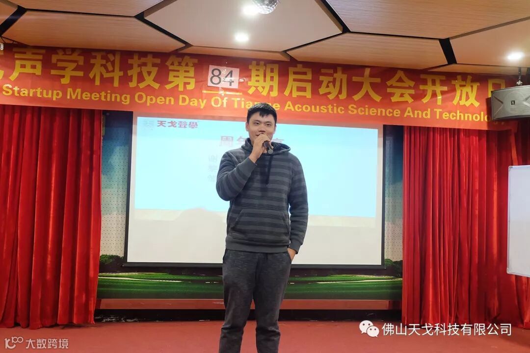 每每到启动大会尾声,董事长黄总总会上台给家人们勉励,这一次,他还是带病上台的。是的,黄总就像大家长一样带着我们成长和向前,相信在他的引领和大家的共同努力下,天戈声学必定能走得更远、更远!