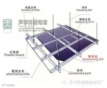 6、隔声天花板:ktv防火隔音天花板传播楼层之间的噪声也是不可忽略的问题,一般采用吊挂定型吸声板,距离天花板10-625px,挂勾宜带弹簧,用来减弱板面的声振动,避免引起吸声板面振动,而发出干扰噪声。