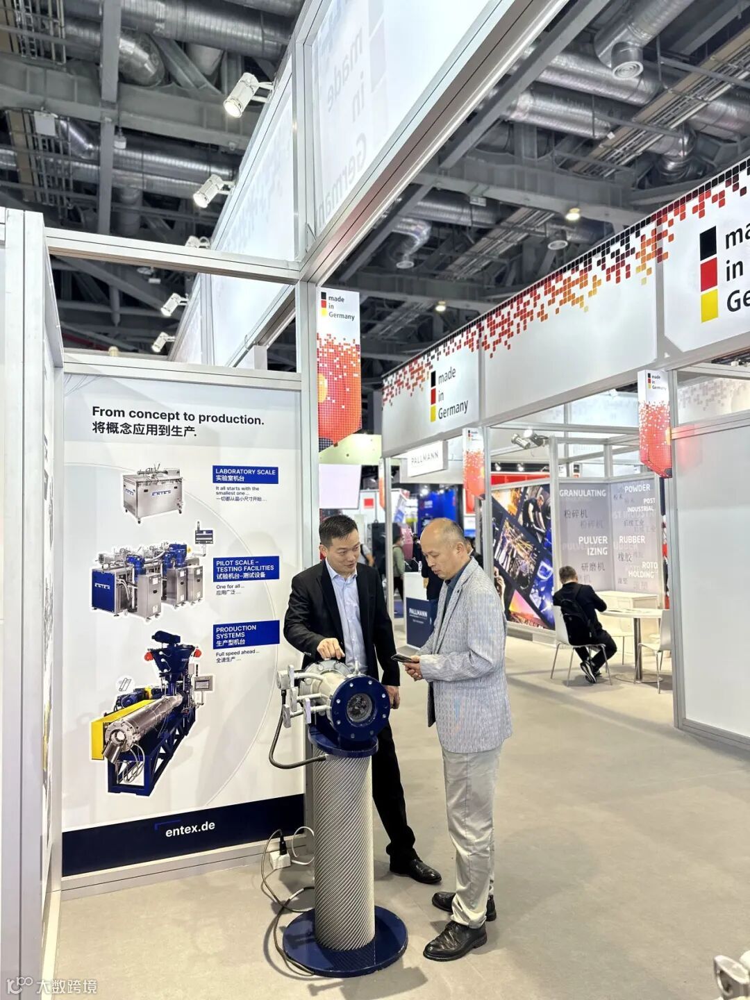 在Entex展位,众多客户及观众对此革命性的挤出加工技术表现出浓厚兴趣。Entex行星挤出机相较传统挤出技术的连续式生产、模块化结构、低剪切、高效排气、可控反应挤出、低能耗等特点,在热敏性材料、高填充色母粒、电缆屏蔽料、化学反应挤出、胶黏剂、食品工业、再生回收塑料等领域将得到越来越多的关注和应用。