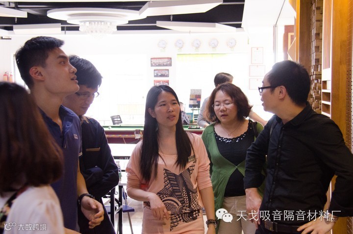 国内销售总监李总监以及声学顾问薛工,为莅临指导的设计师们介绍我们天戈的声学材料。
