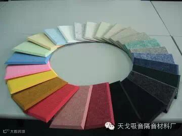 聚酯纤维吸声板是由100%聚酯纤维为原料,经过热压合成茧棉状。孔隙率达到90%以上,在中高频范围内具有良好的吸声性能。